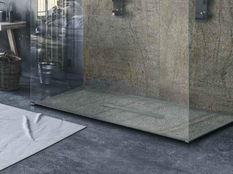 Le receveur de douche encastré est directement intégré au niveau du sol de la salle de bain et posé sur une chape ou un panneau de construction. Il offre ainsi une apparence harmonieuse et un rendu extra-plat, sans rebord ni marche à l’entrée de la cabine de douche.