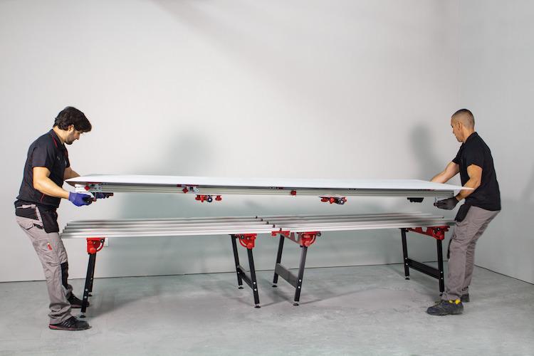 Concernant la manutention des grands carreaux de carrelage, la table de découpe est un équipement indispensable. Les barres en aluminium extra renforcées de la table pour slab de chez Rubi permettent d’assurer une excellente stabilité et rigidité lors de vos travaux de coupe. Conçue pour maximiser l'efficacité et la précision lors de la coupe, cette table est spécialement adaptée pour accueillir de larges dimensions de carrelage.